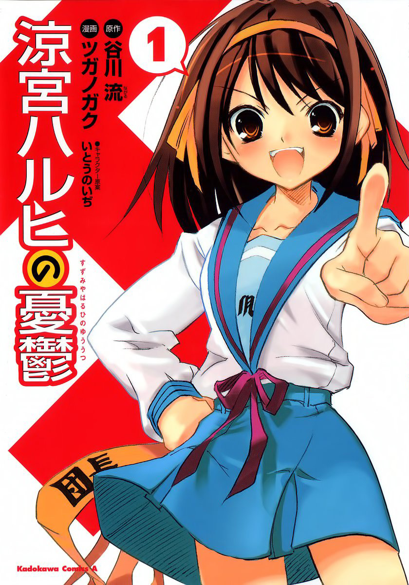 Haruhi on the cover of The Melancholy of Haruhi Suzumiya